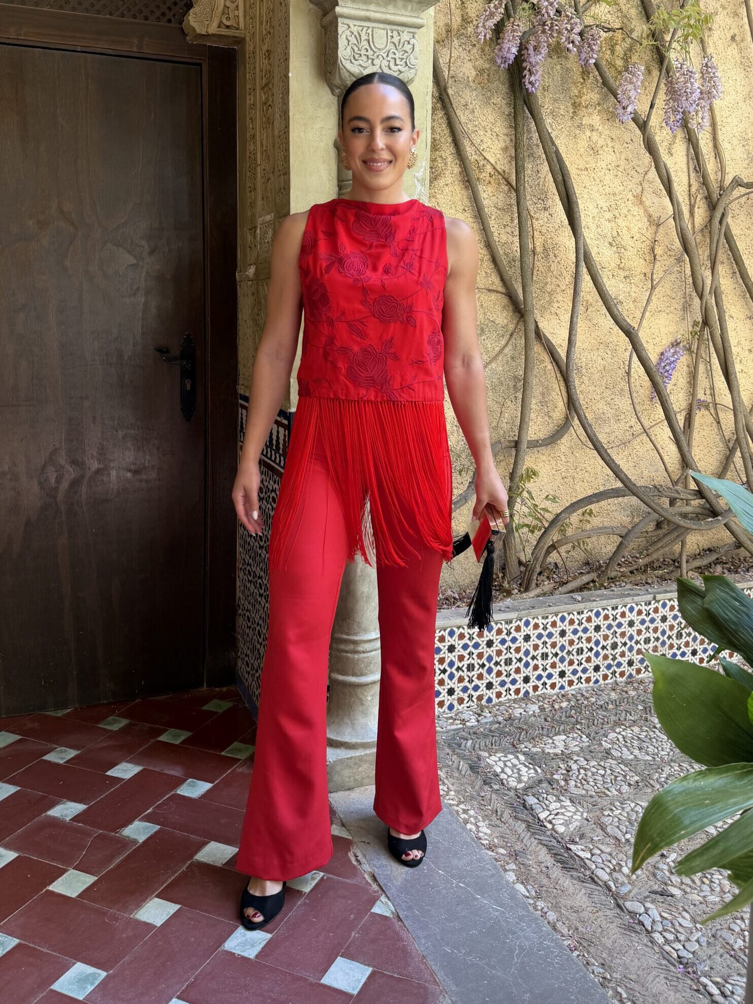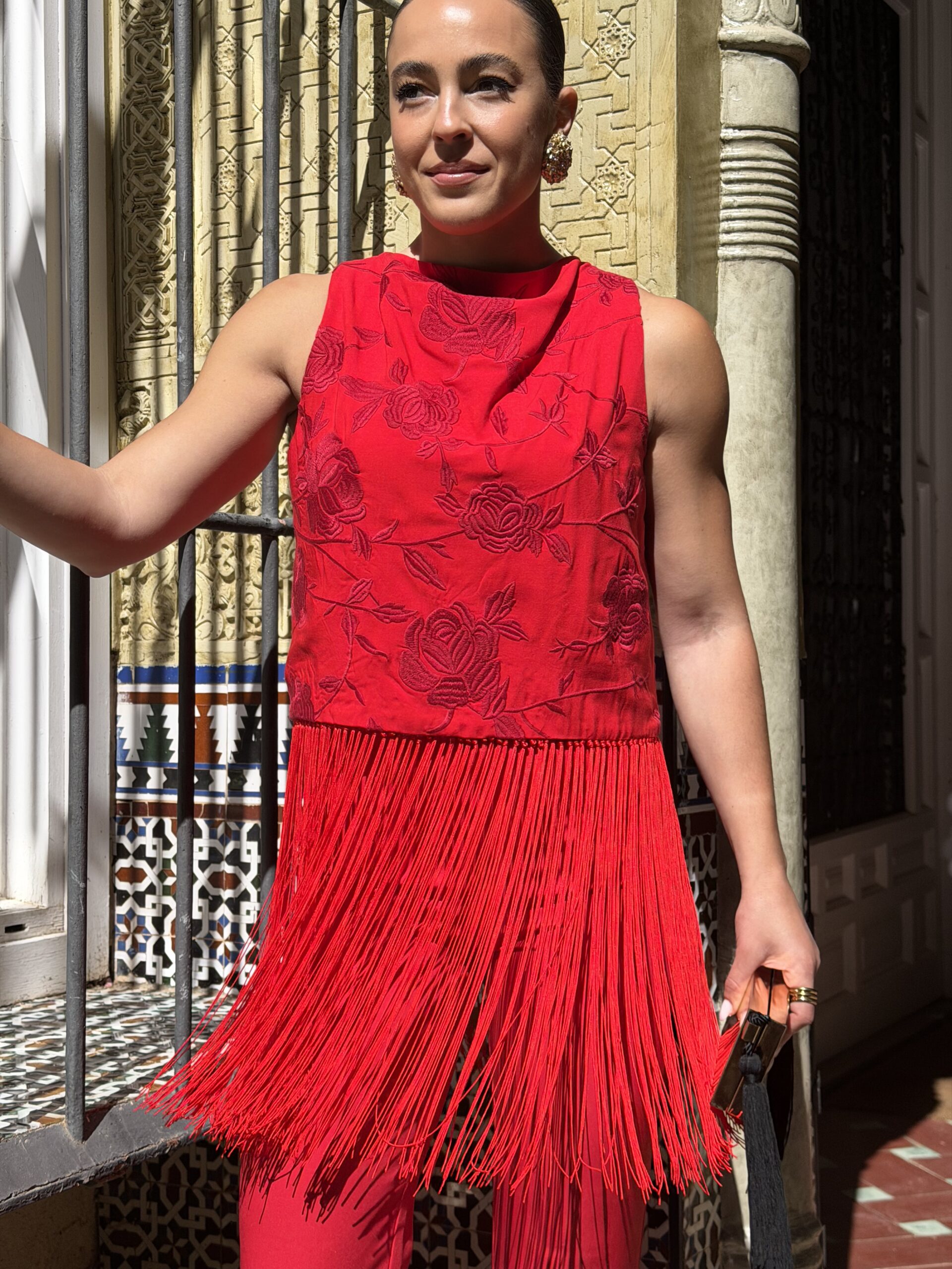 Perfecto para llevar en feria con un aire diferente, pero también para adaptarlo a otros planes, combinándolo con prendas más neutras o más elevadas según el momento.